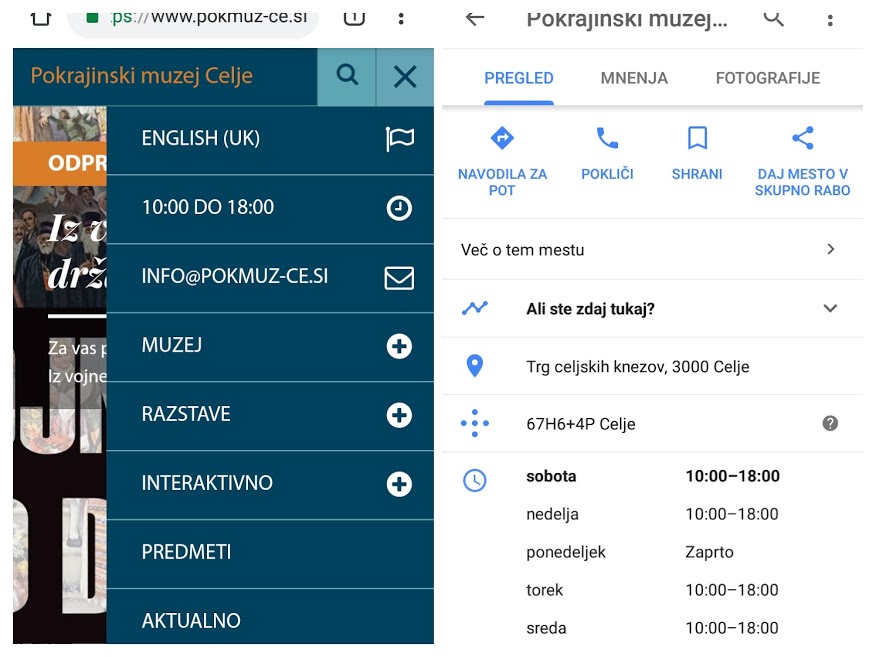 Ob kavici preverimo naslov našega cilja in delovni čas. Kolikor zasledimo na spletu, je vsebinsko Pokrajinski muzej Celje res vsaj toliko vreden ogleda, kolikor smo že prej slišali. Odločimo se še za hiter obrok pred odhodom, saj predvidevamo, da bo ogled trajal kar nekaj časa. Glede na to, da je tako po podatkih na spletni strani kot po podatkih na Google zemljevidih odprto do osemnajste ure, se nam tako nikamor ne mudi.