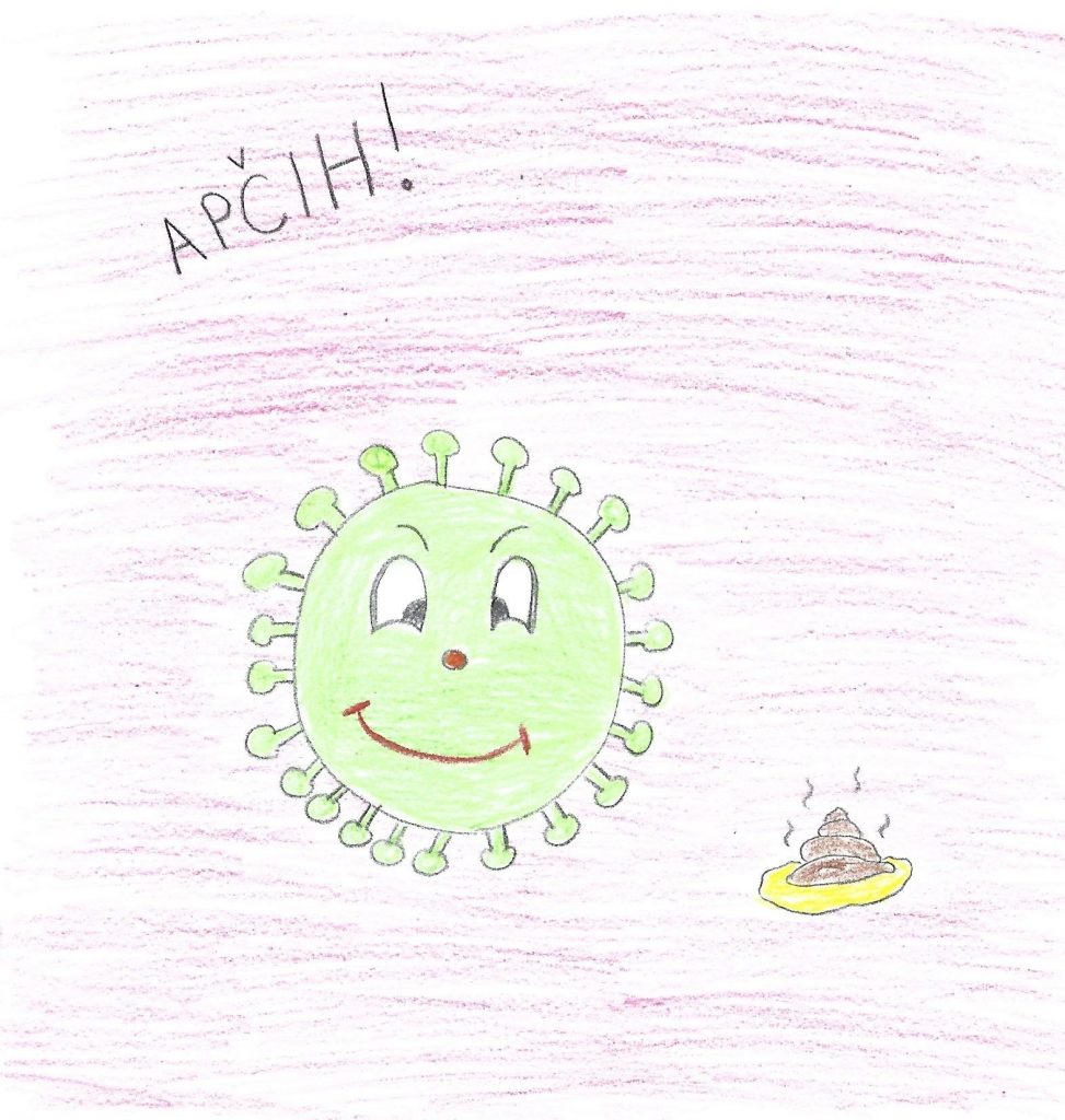 In kje so se pravzaprav potepali? Covid je hitro po začetku svojega popotovanja zašel na roko nekega moškega. Ker ga ta ni videl in si ni umil rok, ga je zanesel v usta, ko je jedel sendvič, od tam pa je po labirintu odtaval do pljuč. Ker je pljuča umazal, je ta moški zbolel in pričel kihati in kašljati in tako ga je poneslo do drugega človeka. In ker si tudi ta ni umil rok, se je zgodba ponovila. In podobno se je zgodilo z množico vseh ostalih Korončkov, ki so se podali na pot za Covidom. In tako so ljudje po vsem svetu pričeli kihati in kašljati, nekateri so celo dobili vročino in hudo zboleli.