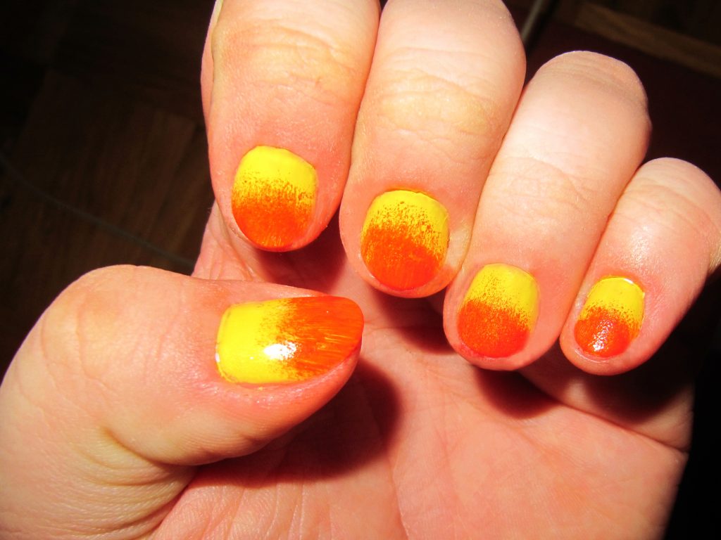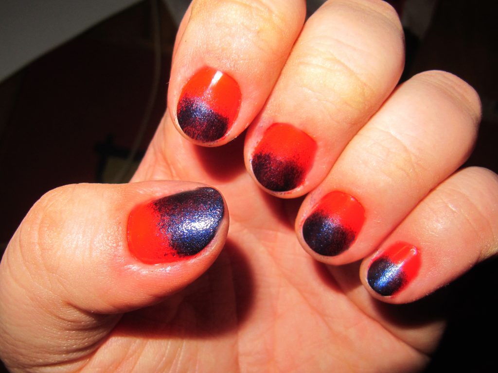 Nohte si najprej nalakirajte z eno barvo laka za nohte in počakajte, da se posuši. Vzemite gobico in nanjo nežno namažite nekaj laka za nohte druge barve. Gobico podrgnite/potapkajte po vrhnjem delu nohta – najbolj pri konici, navzdol pa vedno manj. Najbolje je, da za začetek uporabite manj laka za nohte, saj je vedno bolje da kasneje dodajate, kot da daste že na začetku preveč. Lahko kupite prav za to namenjene gobice, ali pa enostavno razrežete Viledo za pomivanje posode!