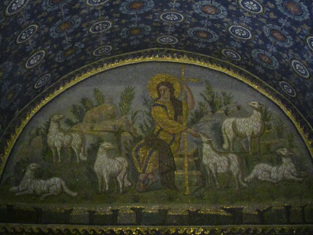 Ravena leži v bližini Jadranskega morja na severu Italije. V osnovi je bila antično mesto z velikim pristaniščem, vendar je v 3. stoletju začela nazadovati, saj je trgovanje skoraj izumrlo. Razlog je bil, da se je obala morja začela umikati in je mesto skorajda ostalo brez pristana. V začetku 5. stoletja je cesar Honorij že pri desetih letih postal vladar Zahodnega rimskega cesarstva in prestolnico preselil v Raveno, kar je ostala do padca cesarstva leta 476. Po tem je kralj Teodorik v Raveni ustanovil Ostrogotsko enklavo (ozemlje države, ki je popolnoma obdano z ozemljem druge države) in poskušal obnoviti nekdanjo slavo Rimskega cesarstva. Ravena je danes svetovno znana zaradi svojih zgodnje krščanskih in bizantinskih mozaikov, ki krasijo njene cerkve in ostale spomenike. Številni med njimi segajo v 6. stol. n. št., ko je bila Ravena prestolnica zahodnega dela bizantinskega imperija, ki sta mu vladala Justinijan in Teodora. V sredini 8. stoletja so nadvlado prevzeli Langobardi, ki si jih je pokoril frankovski kralj Pipin in Raveno podaril rimskemu papežu Štefanu II. ter s tem postavil temelje Papeški državi.