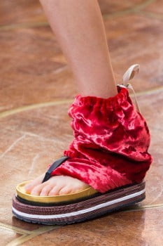Naslednje, kar me je sila zabavalo in za kar sem verjela, da ne gre skupaj, pa sedaj dojela, da sploh ne zgleda slabo, je kombinacija (elegantnih) oblekic s športnimi ali drugimi sila neformalnimi čevlji oz copati. Zanimiv in privlačen trend. Predvsem pa udoben.