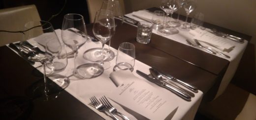 Kot se spodobi, smo prišli malo pred dogovorjeno uro. Restavracija je bila skoraj prazna. Natakarju povemo priimek, na katerega glasi rezervacija, in prijazno nas pospremi do mize. Težko se je bilo odločiti med menijema, zato naročimo tako meso kot ribo. Še preden smo dobili pijačo, je bila restavracija polna. Par brez rezervacije so bili primorani odsloviti, saj so sprejeli maksimalno število rezervacij.
