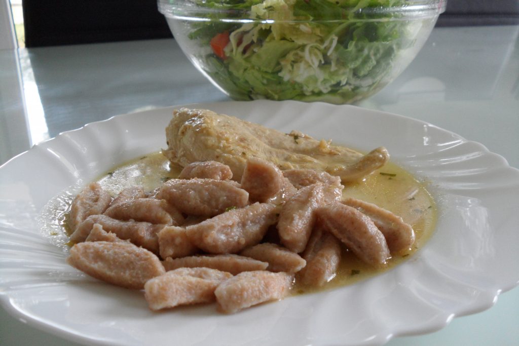 Odkar sem našla recept za njoke s skuto, so moje večerje bolj zanimive, jaz pa veliko bolj srečna. So neverjetno enostavni za pripravo in nadvse okusni. So primerna večerja, saj so lahki. Ponudite jih s piščančjimi zrezki v naravni omaki ali katerim koli drugim golažem/polivko, ki je primerna za vas. Recept za njoke najdete tukaj.