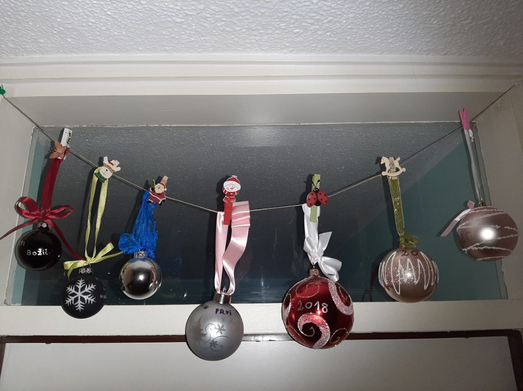 Odkar sva z možem praznovala prvi skupni božič, kupiva vsako leto eno posebno božično kroglo, na katero zapiševa letnico. Včasih dopiševa še kakšno malenkost, kot na primer: prvi božič v novem stanovanju, hčerkin prvi božič …