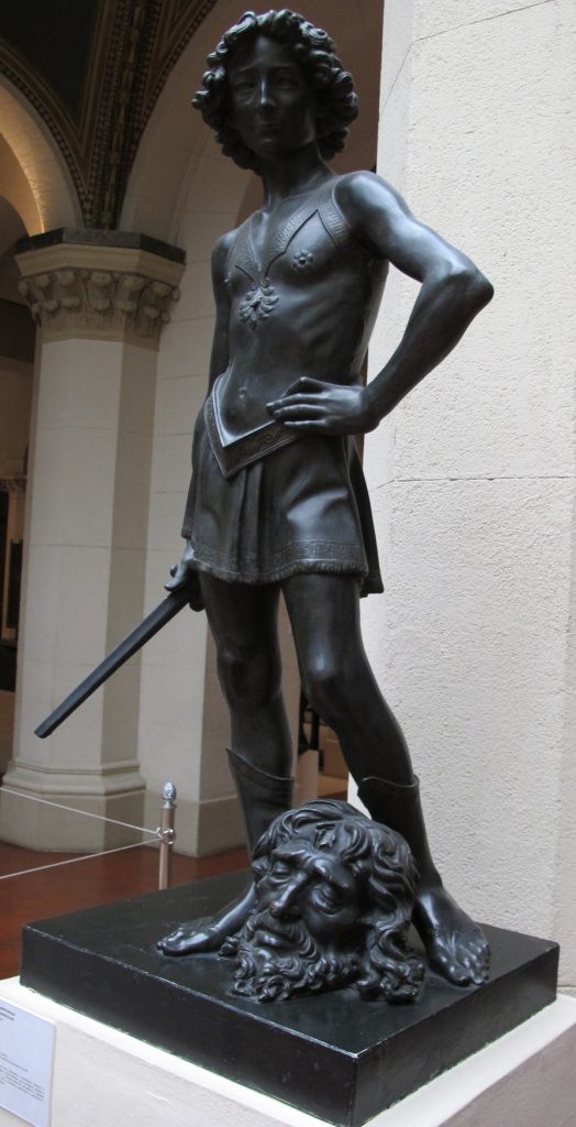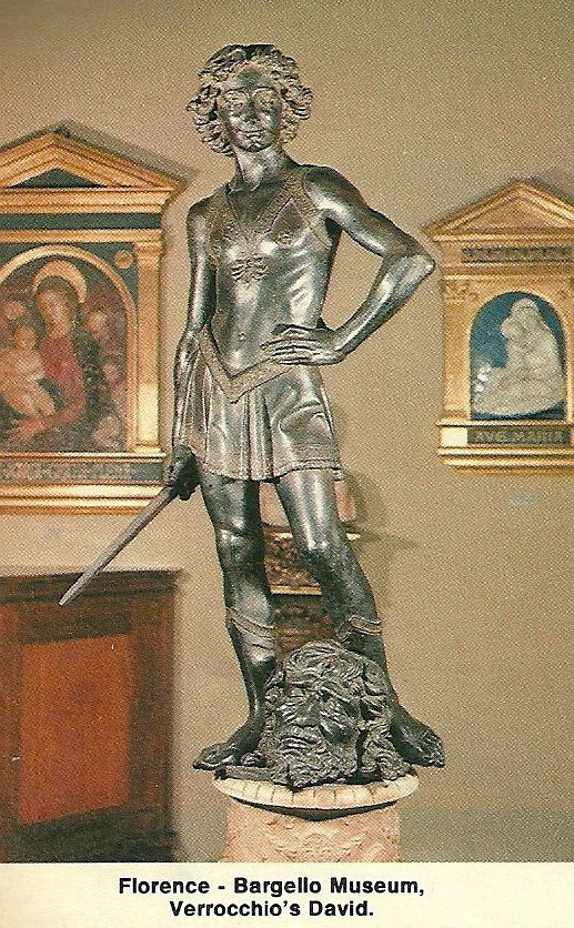 David, motiv, ki so ga oboževali priznani renesančni in baročni umetniki. V italijanskih Firencah ga lahko občudujete kar trikrat: kip, ki ga je upodobil Michelangelo, Donatellov kip in kip Verrocchija. Slednjemu se bom posvetila v tem zapisu, druga dva pa sem na kratko orisala v prejšnjih prispevkih.